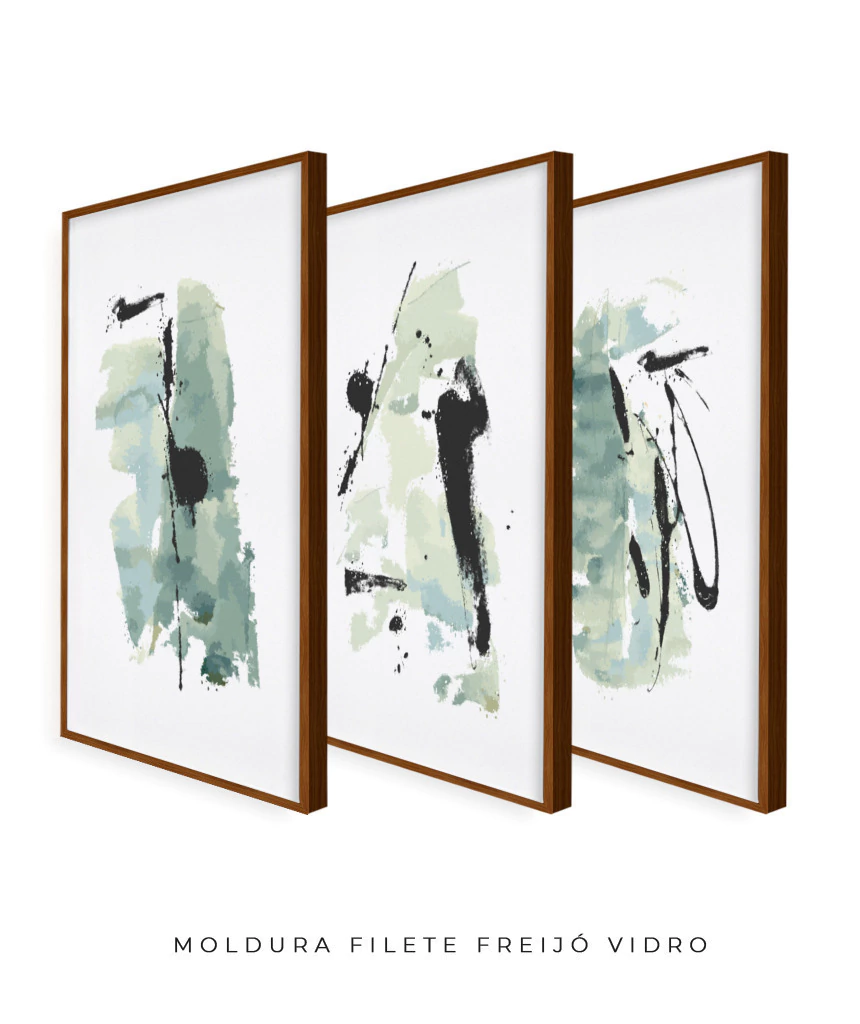 Conjunto com 3 Quadros Decorativos - Pinceladas Abstratas. Transforme seu ambiente com uma obra exclusiva da artista Claudia Dias.
